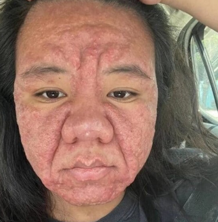 Değişimler yavaş yavaş başladı. Farah ilk başta yüzünde kızarıklıklar ve küçük sivilceler fark etti. Ancak kısa süre sonra bunlar, günlük rutinlerini bile zorlaştıran ağrılı iltihaplanmalara dönüştü. Yüzü şişti, kırışıklıklar erken ortaya çıktı ve yüz hatları eskisinden daha sertleşti. Burnu ve kulakları bile daha büyük göründü ve bu da onu kendi teninde bir yabancı gibi hissettirdi.