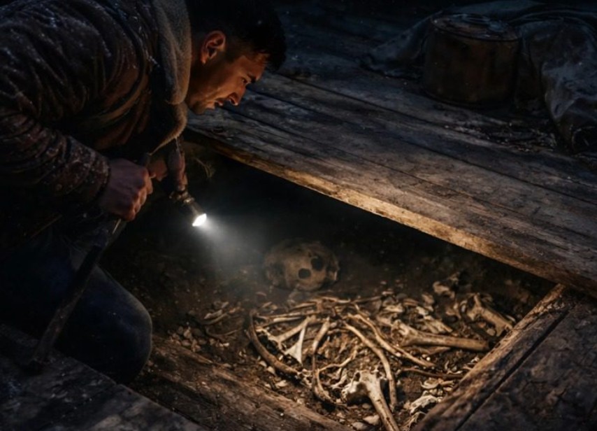 Gece boyunca köpek susmadı; mutfak duvarının etrafında dönüp durarak toprağı kazıdı. Sabah olduğunda adam, köpeğinin bu tuhaf ısrarına anlam vermek için mutfak zeminindeki gevşek duran tahtaları sökmeye karar verdi. Diğer çürümüş tahtaların aksine, bir tanesinin yeni çivilerle çakıldığını fark etti. Levye ile tahtayı kaldırdığında burnuna ağır bir nem ve tanıdık ama dehşet verici bir koku geldi. Döşemenin altında, daha önce gizlenmiş dar bir mahzen girişi duruyordu.