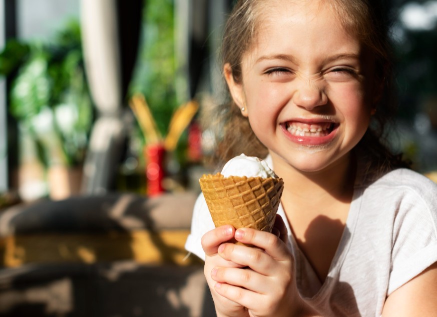 Babası ona yeni bir külah dondurma aldı – çift top.