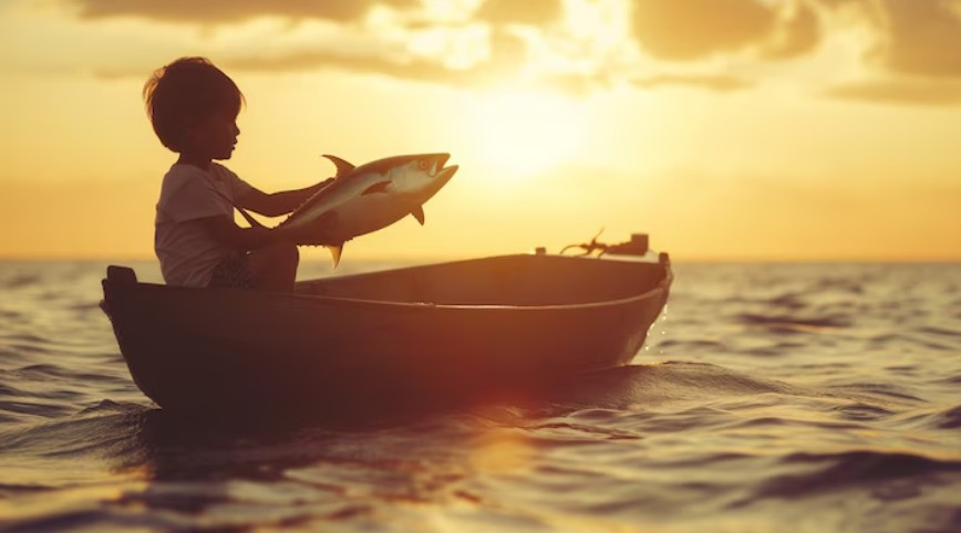En küçük oğul, teknenin yanında yüzen bir denizanasına hayran kalmış, ona dokunamayacak kadar eğilmişti. Bir anda dengesini kaybedip suya düştü.