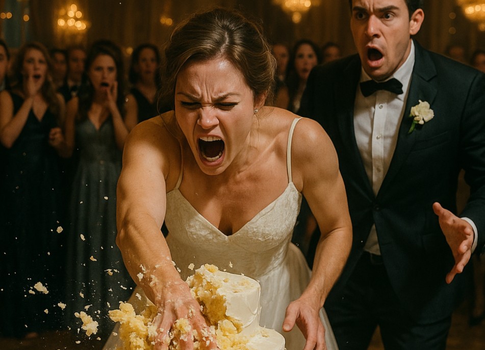 Sağır edici bir sesti. Yedi katlı pasta sallanıp mermer zemine düştü. Porselenler paramparça oldu. Kalın sünger ve krema katmanları patlayarak ilk konukların üzerine sıçradı. Altın yapraklar ve beyaz krema, tertemiz elbisemi ve Ethan’ın pahalı smokinini kapladı.