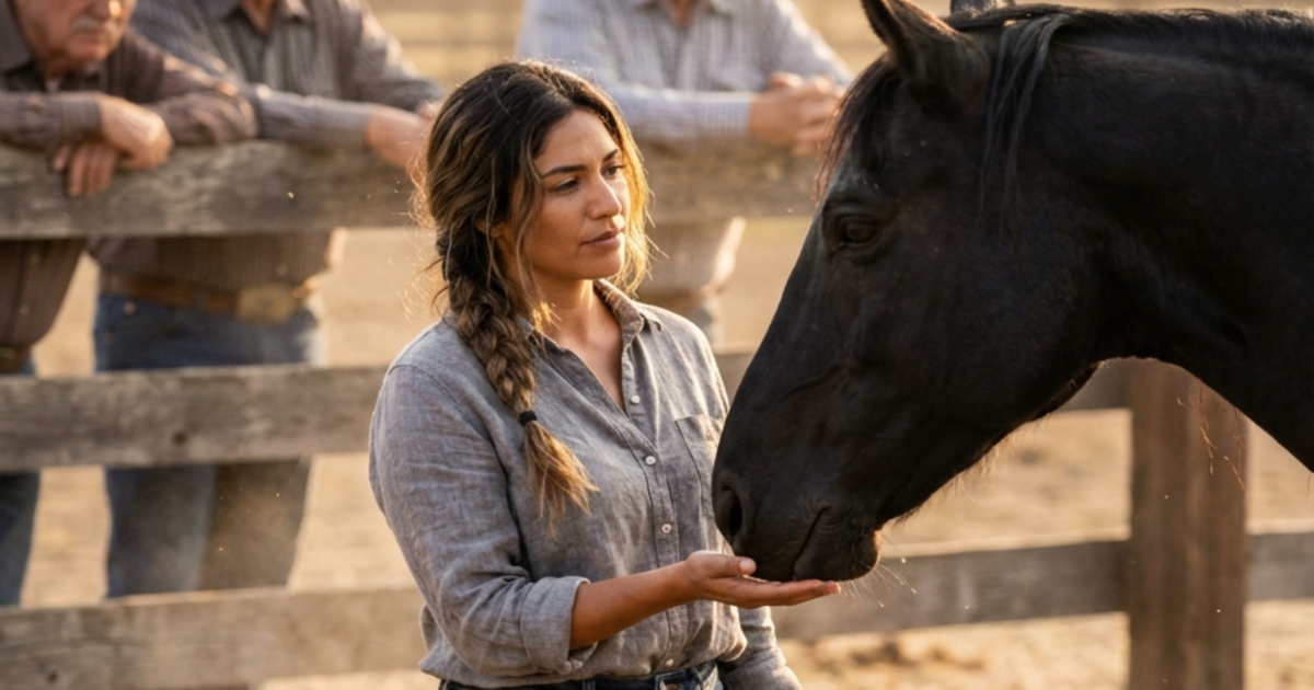 Elena, atın yanına geldiğinde herkes bir saldırı bekliyordu. Ancak o, elinde kırbaç veya gem yerine sadece derin bir sessizlik taşıyordu. Sert hareketler yapmak yerine, sanki bir dostuna yaklaşıyormuş gibi yavaş adımlarla ilerledi. At huysuzlanıp şaha kalkmaya hazırlandığında, Elena durup doğrudan onun gözlerine baktı. Korku hissetmiyordu; çünkü karşısındakini bir düşman olarak değil, ruhu yaralanmış bir canlı olarak görüyordu.