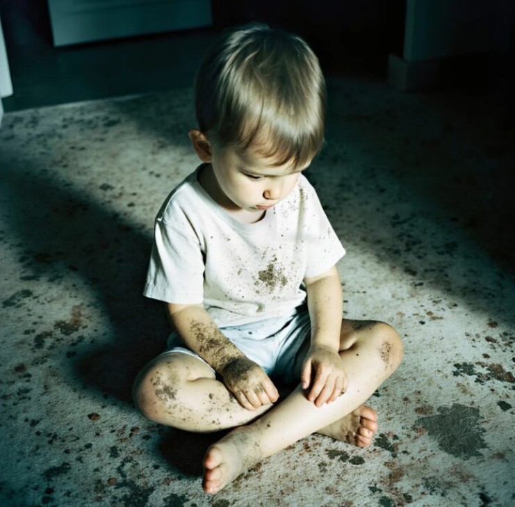 Evin içinde ilerledikçe ağlama sesi oturma odasından gelmeye başladı. İçeri daldığımda gördüğüm manzara karşısında kanım dondu: Tozlu halının ortasında, bir yaşlarında, yapayalnız ve çıplak ayaklı bir bebek yatıyordu. Yanında devrilmiş bir biberon duruyordu. Etrafta ne bir eşya ne de başka bir insan izi vardı; sadece bu titreyen, gözü yaşlı küçük can parçası… Korkum bir anda yerini derin bir öfkeye ve koruma içgüdüsüne bıraktı. Hemen ceketimi çıkarıp bebeğe sardım ve polisi aradım.